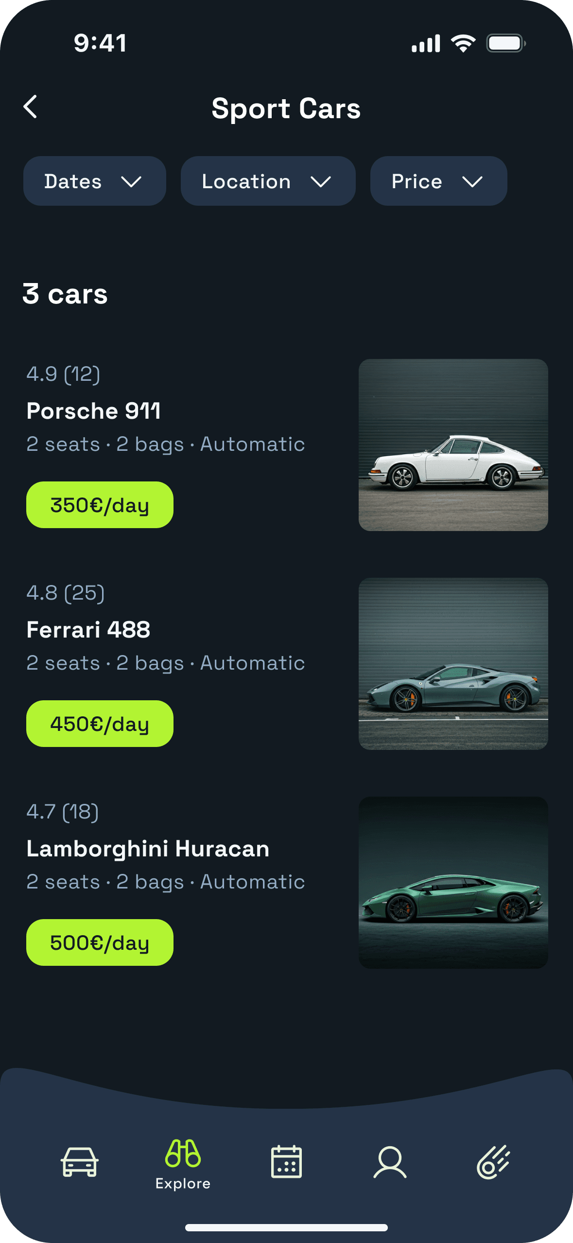 A guided walkthrough of Aurion’s core booking flow: exploring curated vehicles, reviewing details and availability, and completing a reservation with clarity and confidence.